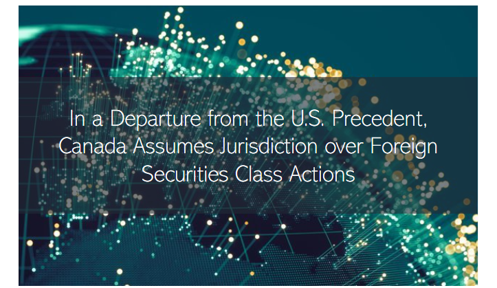 The Ontario Superior Court of Justice decided recently that it has the authority to assume jurisdiction over securities class actions...