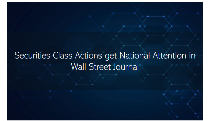 Securities class actions made headlines news last week when the Wall Street Journal featured an article on page B1 of the...
